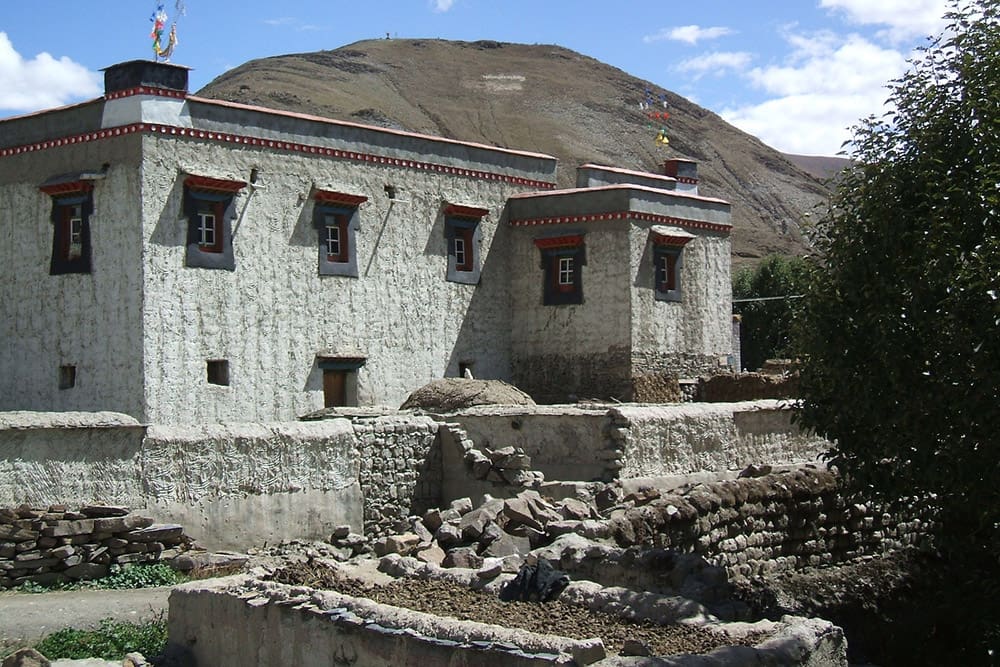 Bezoek aan het Drigung klooster. Een wat kleiner en onbekend klooster dat aanzienlijk beschadigd is tijdens de culturele revolutie. Vanaf het klooster heb je een mooi uitzicht op de vallei. Achter het klooster bevindt zich de grootste plek voor de traditionele ‘sky burials’ in Tibet. Bij een hemelbegrafenis wordt het lichaam van een overledene aan de gieren gegeven om op te stijgen naar de hemel. Daarbij heeft deze vorm van begraven ook een praktische functie: men heeft in Tibet weinig hout om het lichaam te cremeren en de grond is te hard en te bevroren om het lichaam te begraven. Nabij het klooster bevinden zich eeuwenoude meditatiegrotten. We bezoeken ook het nonnenklooster van Tirdrum.