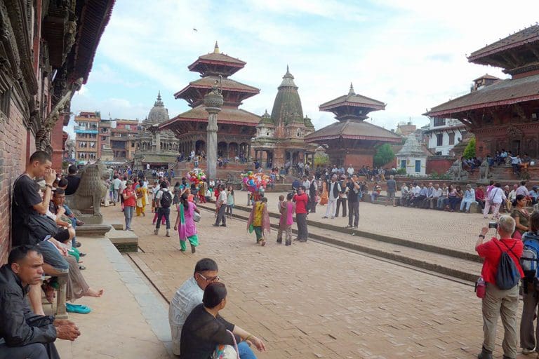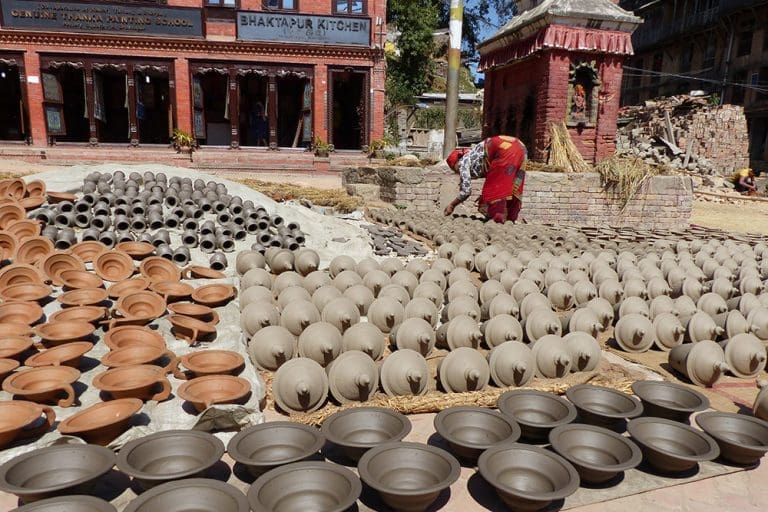 In Bhakatpur, een andere koningsstad dicht bij Kathmandu, heb je echt het gevoel terug te keren naar de middeleeuwen. Hier slenteren we langs de vele, met houtsnijwerk versierde, tempels en door smalle straatjes. In deze oude koningsstad vind je een grote hoeveelheid boeddhistische en hindoesymboliek en op elke hoek staat wel een pagode of een religieuze offerplaats
