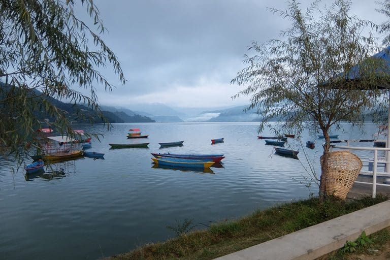 Pokhara ligt aan het Phewa lake. In dit meer ligt een eilandje met een tempel van de godin Varahi. Je kunt het bereiken met roeibootjes die je op verschillende plaatsen kunt huren. Vanuit Pokhara heb je bij helder weer een schitterend uitzicht op de pieken van het hele Annapurna gebergte.