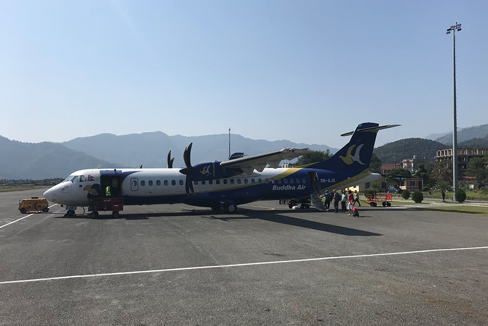 Spectaculaire vlucht langs de Himalaya en bij helder weer met schitterend uitzicht op de witte toppen. 's Avonds is er een smakelijk afscheidsdiner.