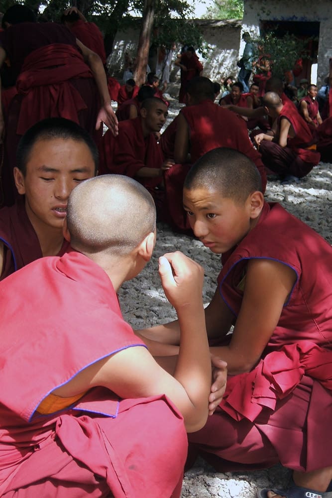 Een bezoek aan de kloostercomplexen van Drepung en Sera staan eveneens op het programma. Dit laatste klooster staat bekend om het debatteren, waarbij de monniken elkaars kennis testen. In de schaduw van de bomen, stelt de een de vragen terwijl de ander, zijn antwoorden kracht bijzet door in zijn handen te klappen en op de grond te stampen.