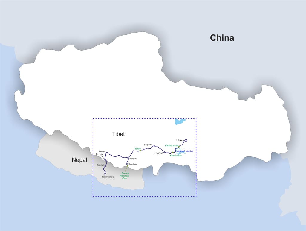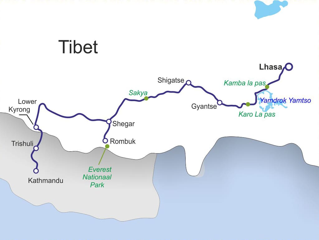 - Fee voor Everest Nationaal Park, Karo La en Yamdrok Tso.